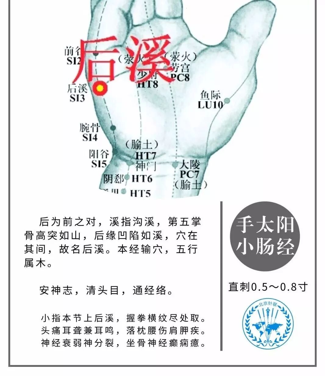 为手太阳小肠经的输穴,又为八脉交会之一,通于督脉属小肠经。有舒经利窍、宁神之功。